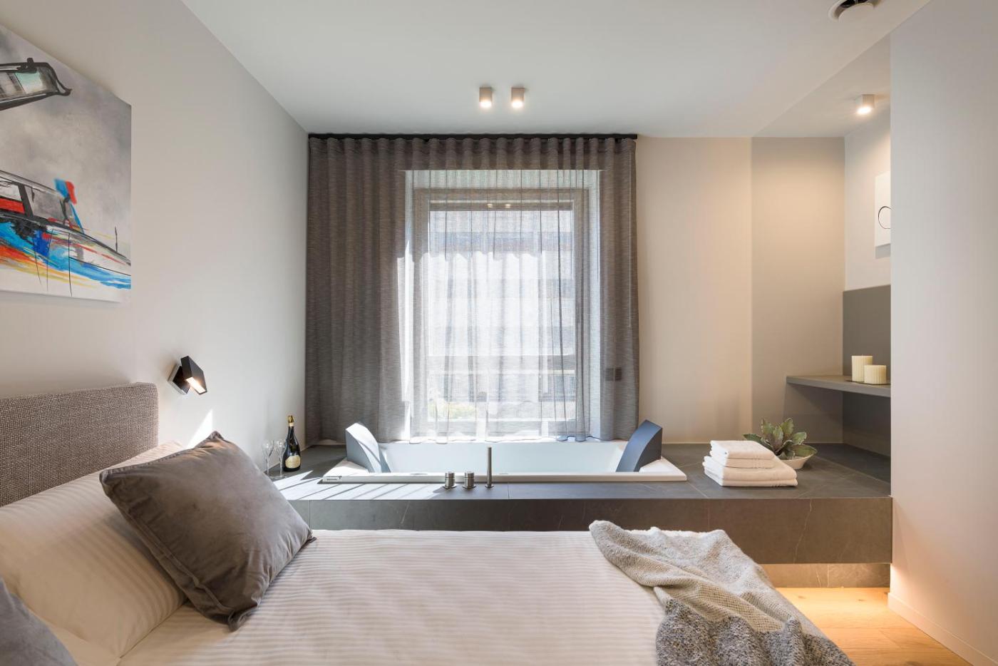 Apartment with Balcony. The hot tub and spa bath are the standout features of this apartment. This apartment consists of 1 living room, 1 separate bedroom and 1 bathroom with a shower and free toiletries. Meals can be prepared in the well-fitted kitchen, which is equipped with a stovetop, a refrigerator, a dishwasher and kitchenware. This air-conditioned apartment comes with a dining area, a flat-screen TV with cable channels a washing machine and a balcony. The unit offers 1 bed. ;