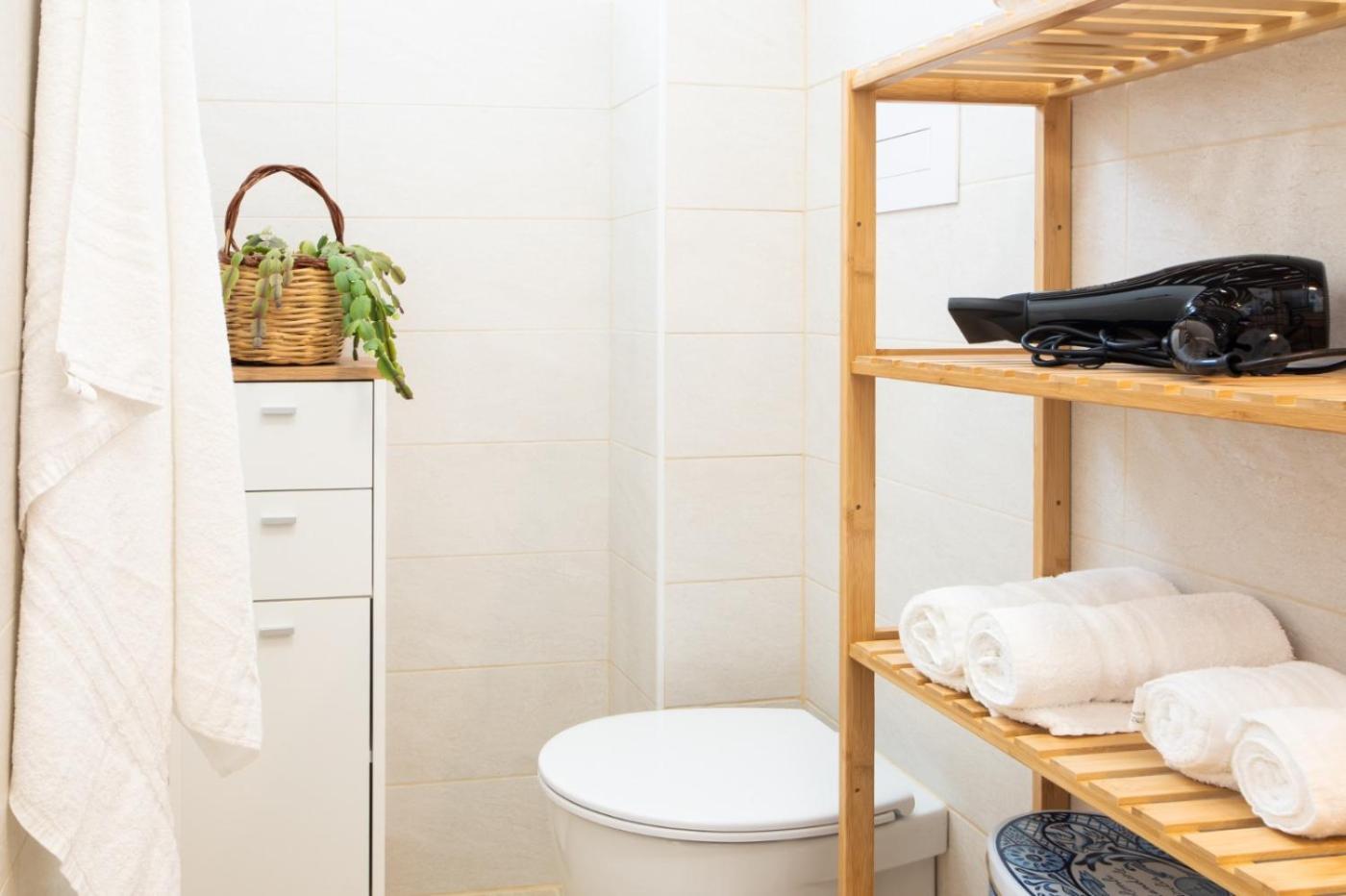 Two-Bedroom Apartment. Boasting a private entrance, this air-conditioned apartment features a kitchen, 2 bedrooms and 1 bathroom with a walk-in shower and a hairdryer. In the kitchen, guests will find a stovetop, a refrigerator, kitchenware and an oven. Featuring a terrace with sea views, this apartment also features a washing machine and a flat-screen TV. The unit has 3 beds. ;
