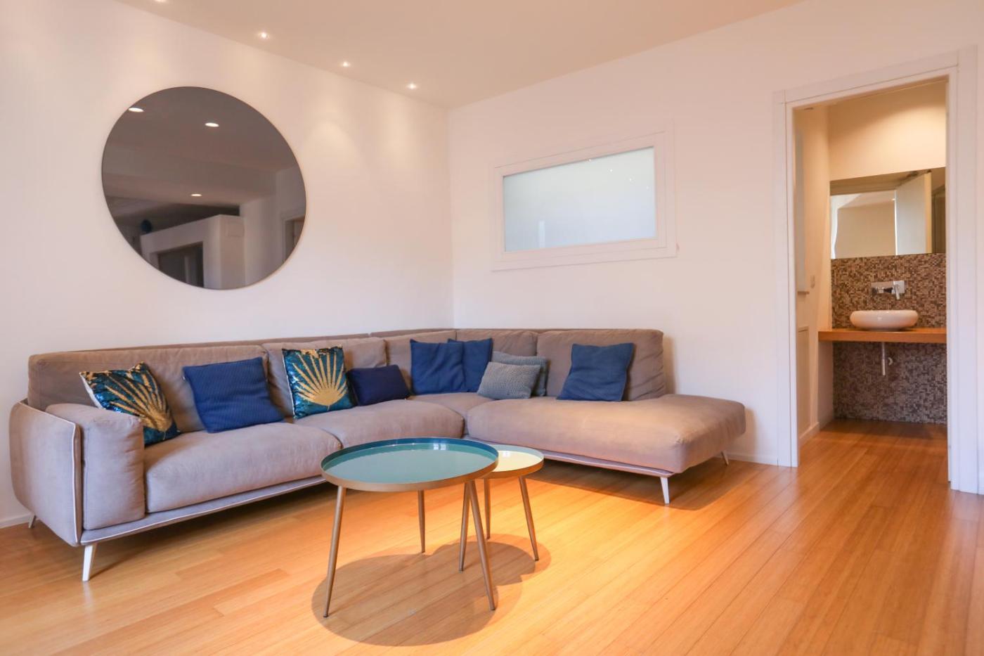 Two-Bedroom Apartment. This spacious apartment features 2 bedrooms, kitchen, a terrace and 2 bathrooms with a bath. The fully equipped kitchen has a stovetop, a refrigerator, a dishwasher and kitchenware. The air-conditioned apartment features a TV with cable channels, a washing machine, a tea and coffee maker, a wardrobe as well as sea views. The unit has 3 beds.